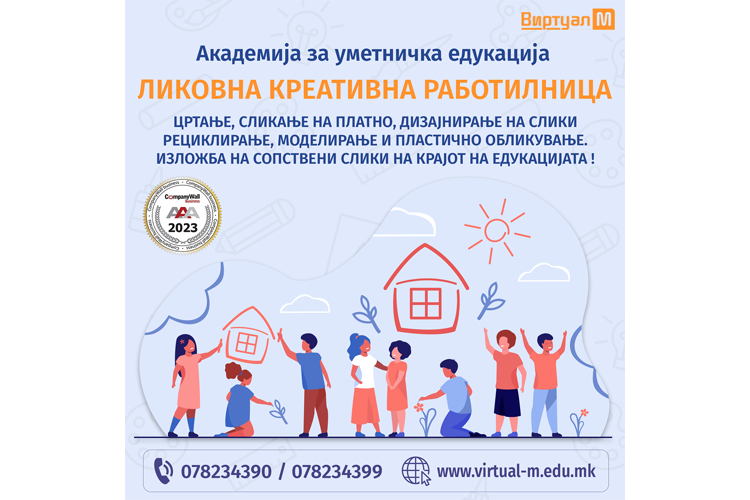 Во Виртуал-М е уметничките курсеви се одвиваат со практична настава по програм компатибилен со европски стандарди.